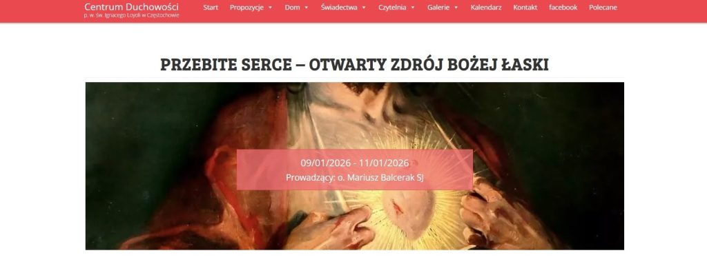 Przebite Serce – otwarty zdrój Bożej łaski 4 stycznia 2026 Przebite JEZUSA – otwarty zdrój Bożej łaski Serdecznie zapraszamy na sesje weekendową w Centrum Duchowości Księży Jezuitów w Częstochowie. Prowadzący: Mariusz Balcerak SJ https://czestochowa-jezuici.pl/…/doswiadczenie-boga-i…/ #AMDG #SerceJEZUSA #Jezuici #Częstochowa